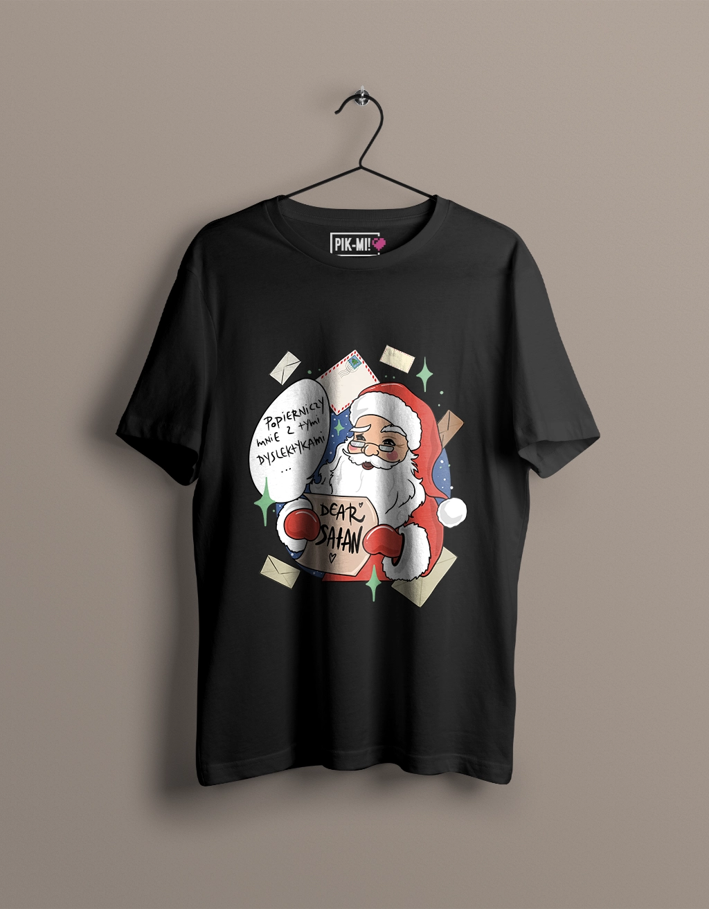 Nie każda literówka kończy się niewinnie… Zwłaszcza gdy trafia do Mikołaja! Ta koszulka to mistrzowska gra słów i świąteczny żart, który łączy czarny humor z bożonarodzeniowym klimatem. Nadruk przedstawia Mikołaja czytającego list z napisem „Dear Satan” oraz jego przemyślenia: „Popierniczy mnie z tymi dyslektykami”. Całość dopełniają dwa bałwanki, które tylko pogłębiają absurd sytuacji.
