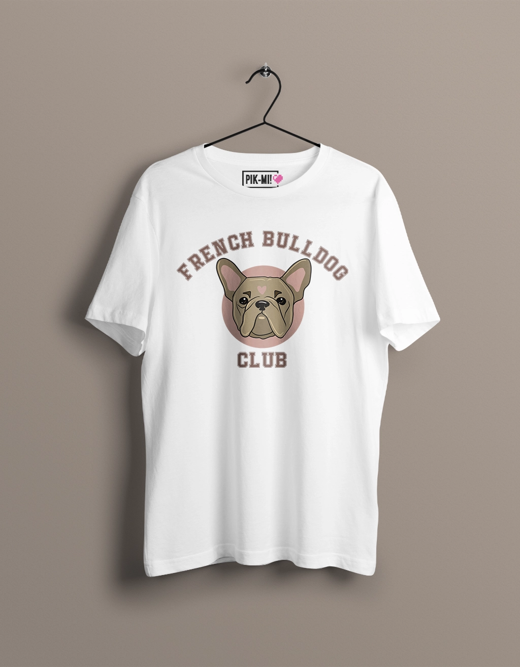 Ta koszulka to must-have dla każdego miłośnika buldogów francuskich! Z przodu znajduje się uroczy nadruk buldoga francuskiego oraz napis „French Bulldog Club” — minimalistyczny, a zarazem wyrazisty design, który łączy modę z pasją do psów.