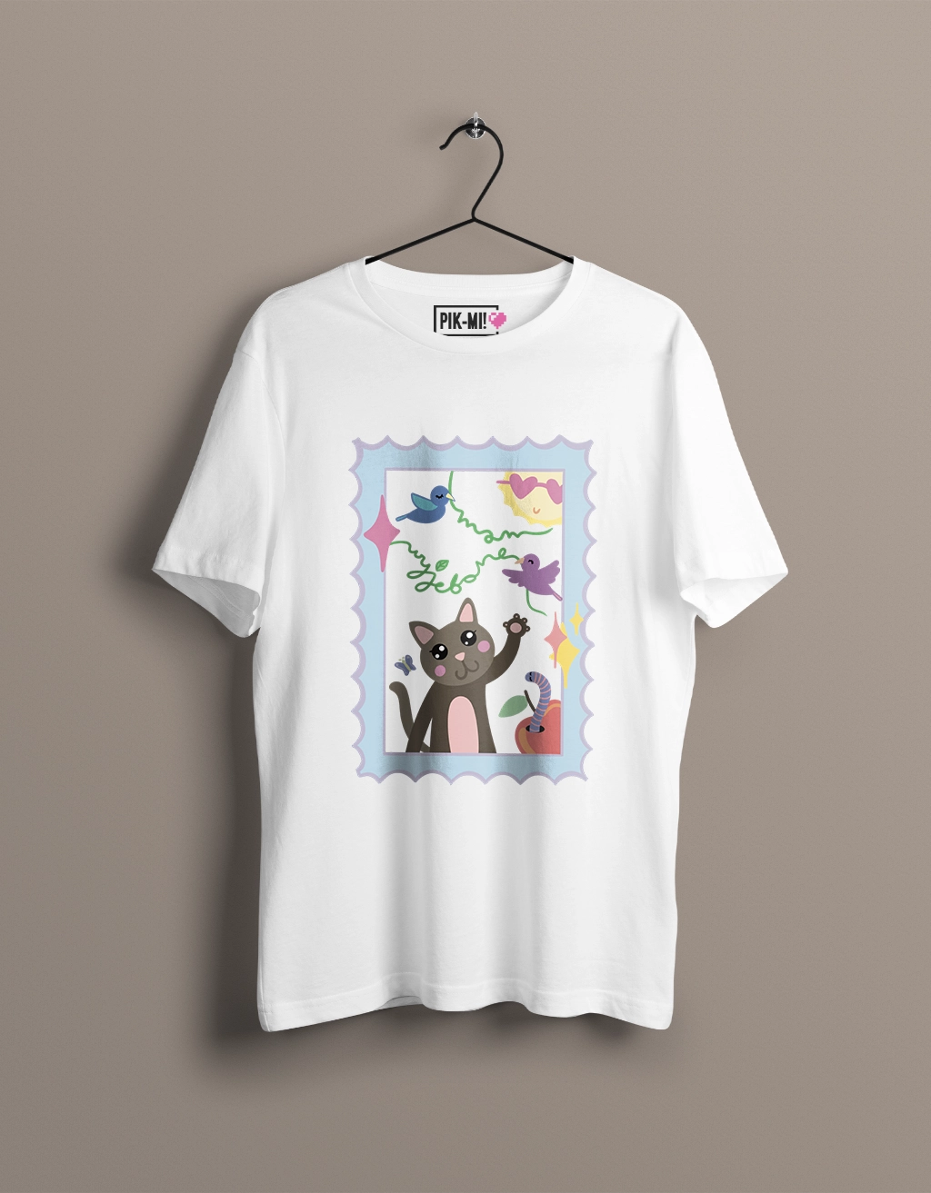 Ta koszulka to idealne połączenie słodkiej estetyki i bezczelnego humoru. Urocza, ręcznie rysowana grafika znaczka pocztowego ozdobionego kotkiem oraz ukrytym napisem „mam wyjebane”. Efekt? Projekt, który na pierwszy rzut oka wygląda niewinnie, a po chwili wywołuje salwę śmiechu. Idealna dla osób, które kochają ironię, subtelne żarty i ilustracje z charakterem.
