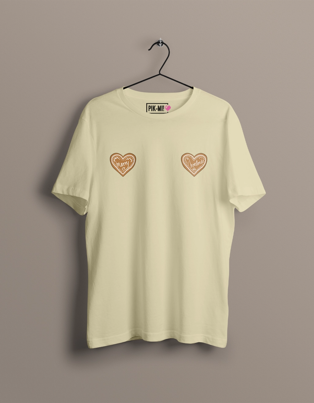 Szukasz koszulki, która rozkręci każdą świąteczną imprezę i pokaże, że masz dystans do siebie i świątecznych tradycji? Nasza koszulka z grafiką dwóch ciasteczek z napisem „Merry” i „Christmas” zasłaniających biust to idealna propozycja dla kobiet, które lubią łączyć humor, świąteczny klimat i odrobinę prowokacji.