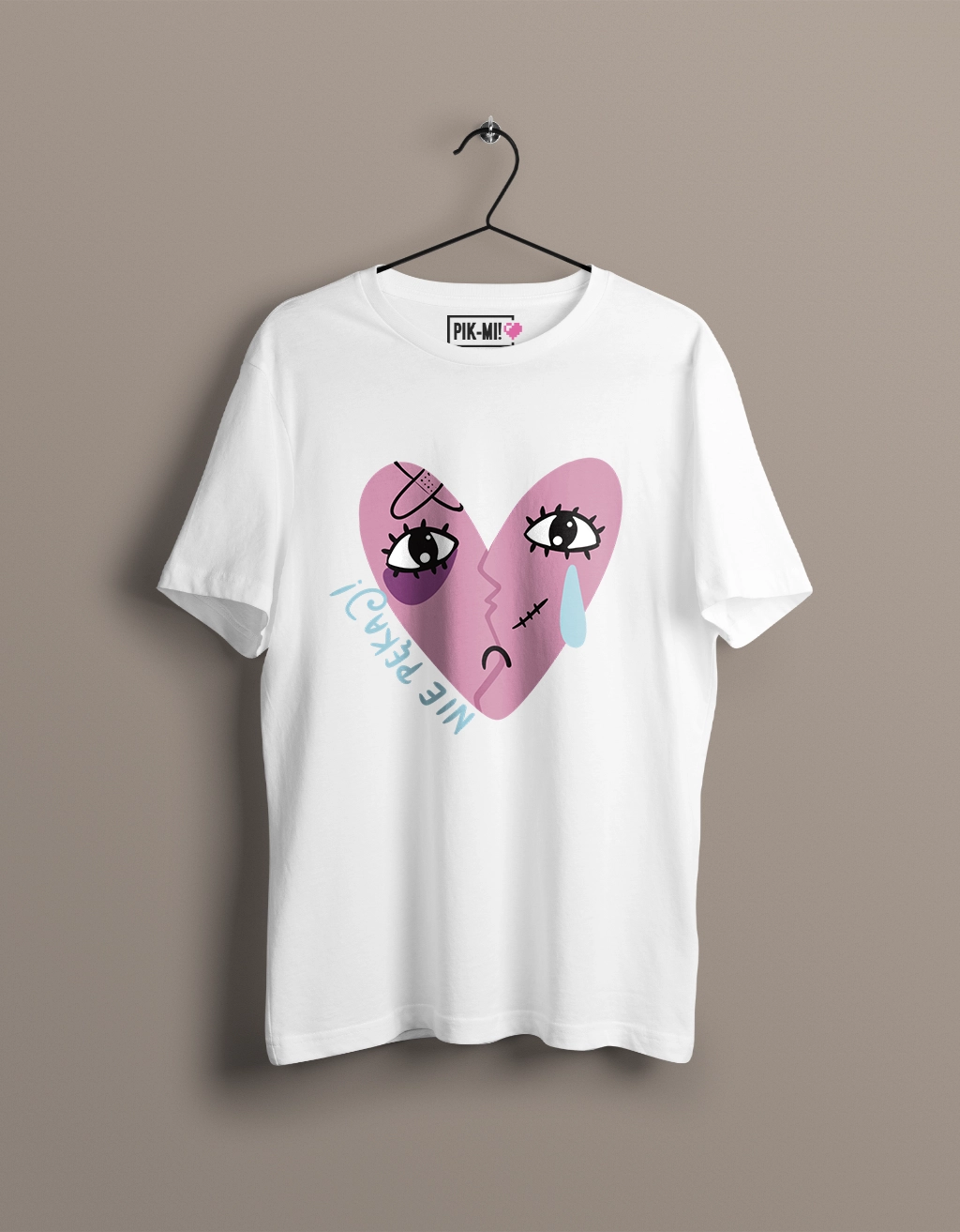 Ten projekt to idealne połączenie emocji, symboliki i delikatnego humoru. Ilustracja przedstawia poobijane serce oklejone plastrami, które mimo wszystkiego wciąż trzyma się dzielnie. Całość dopełnia napis „nie pękaj” — prosty, wspierający komunikat, który trafia prosto w serducho. To koszulka dla osób, które lubią wyrażać siebie, mają dystans do życia i cenią projekty z przekazem.