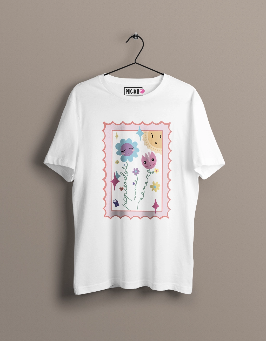 Ta koszulka to idealne połączenie słodkiej estetyki i bezczelnego humoru. Urocza, ręcznie rysowana grafika znaczka pocztowego ozdobionego delikatnymi kwiatkami kryje w łodygach sprytnie wpleciony napis „popierdoli mnie zaraz”. Efekt? Projekt, który na pierwszy rzut oka wygląda niewinnie, a po chwili wywołuje salwę śmiechu. Idealna dla osób, które kochają ironię, subtelne żarty i ilustracje z charakterem.