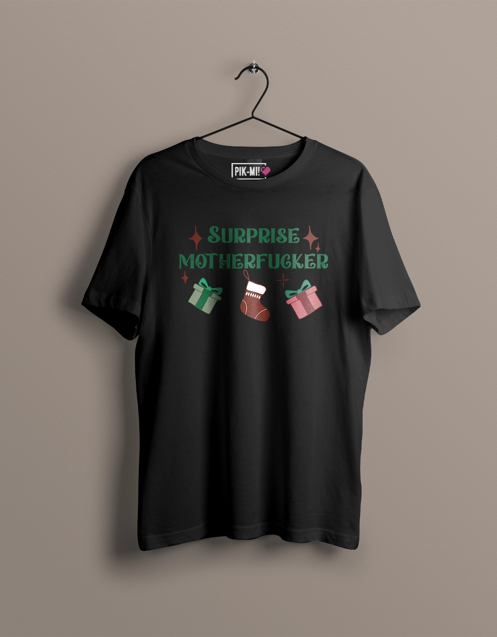 Masz dość słodkich sloganów i grzecznych życzeń? Ta koszulka to świąteczny manifest dla tych, którzy lubią zaskakiwać — dosłownie i w przenośni. Napis „Surprise Motherfucker” w połączeniu z grafiką prezentów, skarpety na prezenty i świątecznych detali to idealna mieszanka bezczelnego humoru i bożonarodzeniowego klimatu. Sprawdzi się na imprezie, wigilii firmowej albo jako prezent dla kogoś, kto nie boi się mocnych tekstów.
