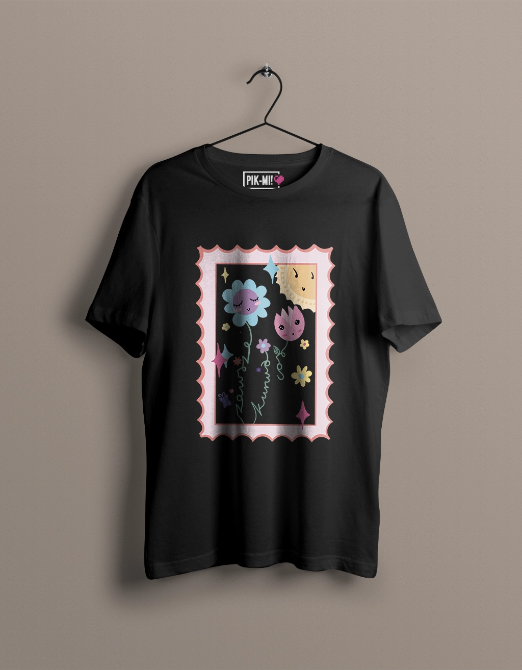 Ta koszulka to idealne połączenie słodkiej estetyki i bezczelnego humoru. Urocza, ręcznie rysowana grafika znaczka pocztowego ozdobionego delikatnymi kwiatkami kryje w łodygach sprytnie wpleciony napis „zawsze kurwa coś”. Efekt? Projekt, który na pierwszy rzut oka wygląda niewinnie, a po chwili wywołuje salwę śmiechu. Idealna dla osób, które kochają ironię, subtelne żarty i ilustracje z charakterem.